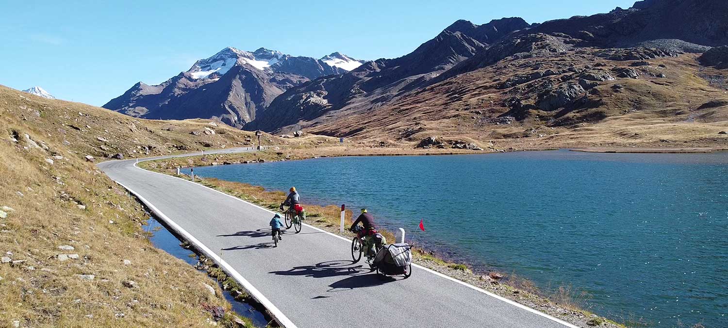 Quindici giorni in bicicletta con la tenda e il sacco a pelo pedalando nel Parco Nazionale dello Stelvio con la mamma Silvia, Lorenzo di 4 anni e Bianca di 1 anno e mezzo. La montagna è uno spazio di vita e come tale deve essere vissuta in un rapporto ininterrotto tra Natura e Cultura.
